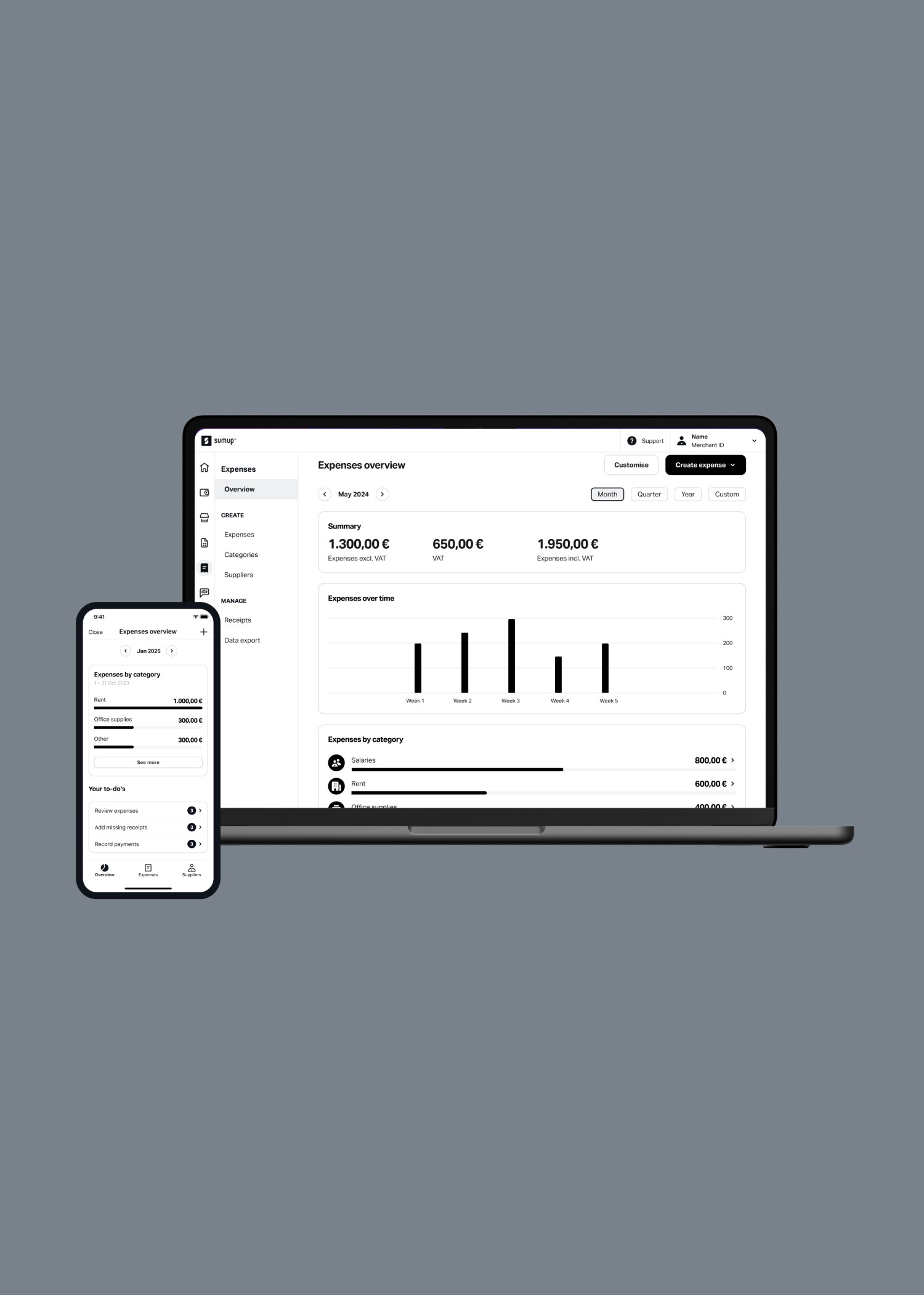 At SumUp, a product team and I developed an AI-powered Expense Management tool from scratch. Automation features, such as creating expenses from Business Account transactions and converting receipts into expenses, saw a rapid adoption.