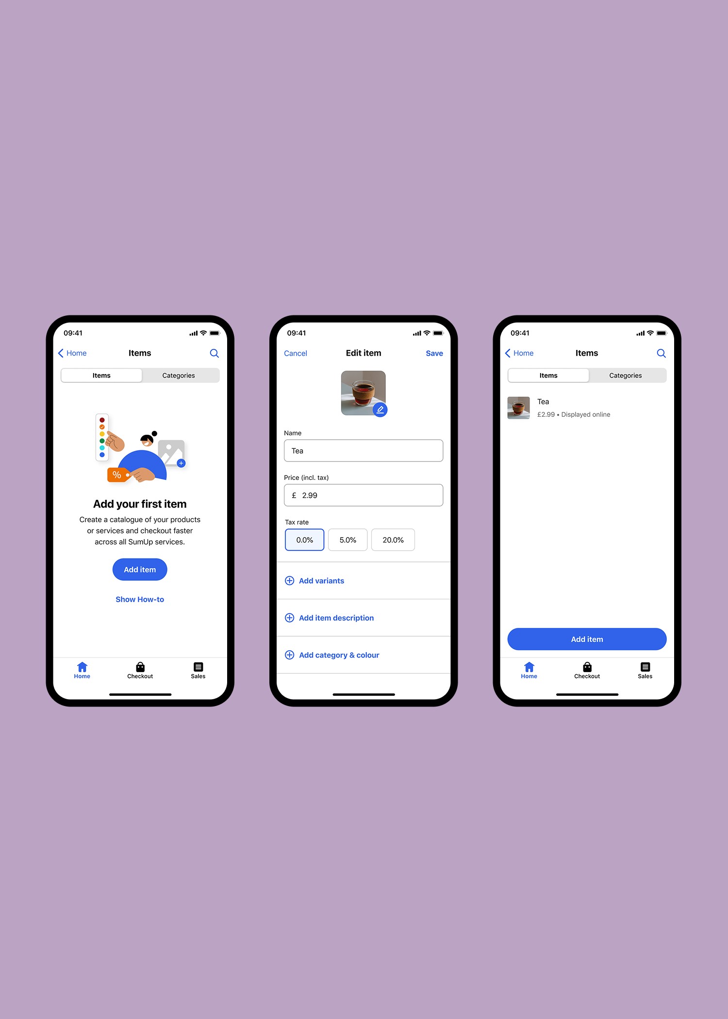 In 2021, I significantly improved how SumUp merchants manage their items in their Point of Sale. Nine months after release, "Items MAUs" increased by 120% and their TPV was up 159%. Now users could enjoy one unified Item Catalog instead of three separate ones.